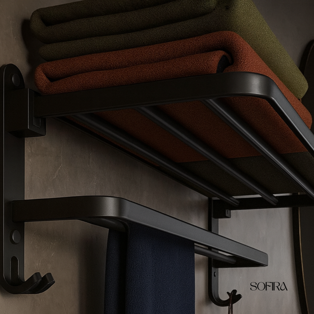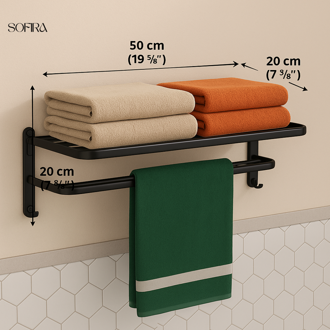 Dubbel Opvouwbaar Handdoekenrek – Matzwart Aluminium (50 cm)
